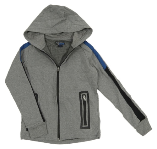 Šedá melírovaná propínací mikina s proužky a kapucí Pocopiano