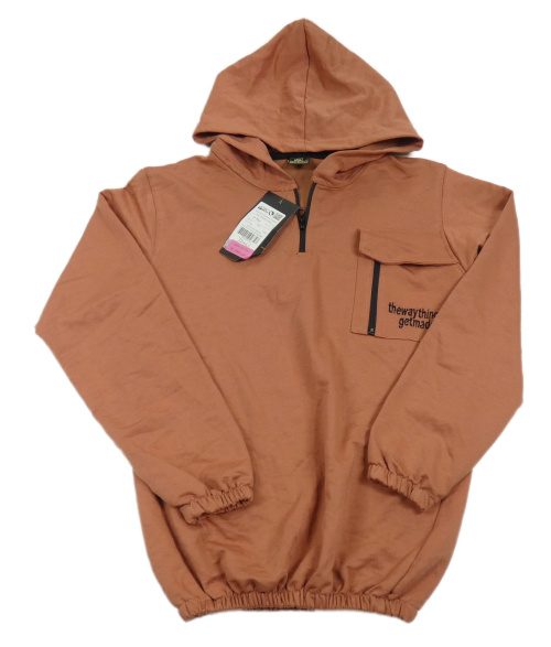 Nové - Hnědá mikina s kapsou s nápisem a kapucí
