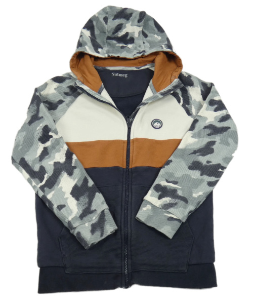 Tmavošedo-hnědo-smetanová propínací mikina s army rukávy a kapucí Nutmeg