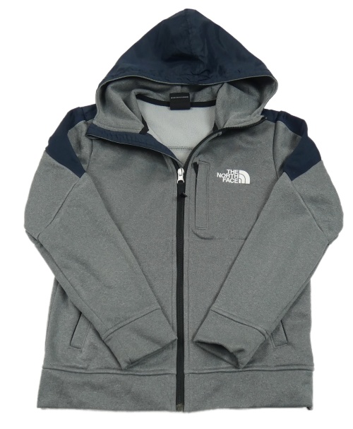 Šedo-tmavomodrá thermo propínací mikina se šusťákovými prvky a kapucí The North Face