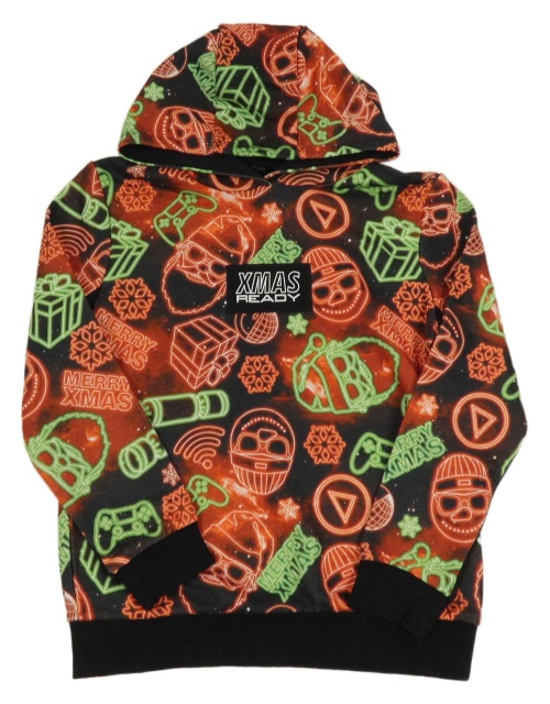 Černo-červeno-zelená mikina s vánočními obrázky a kapucí George