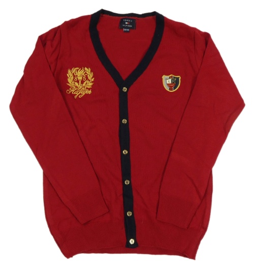 Červeno-tmavomodrý lehký propínací svetr s logem - Tommy Hilfiger