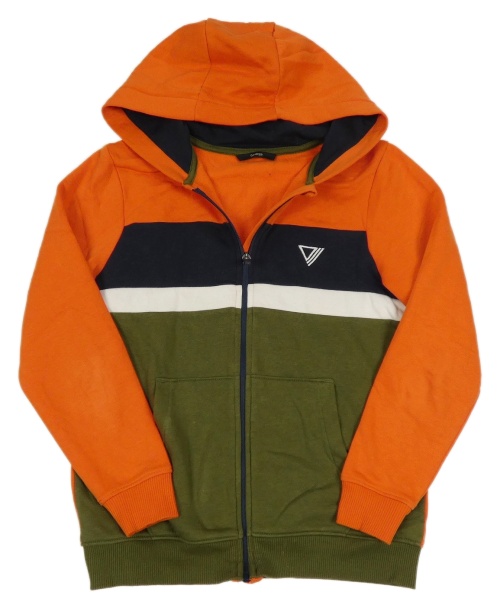Cihlovo-khaki-tmavomodrá propínací mikina s výšivkou a kapucí George