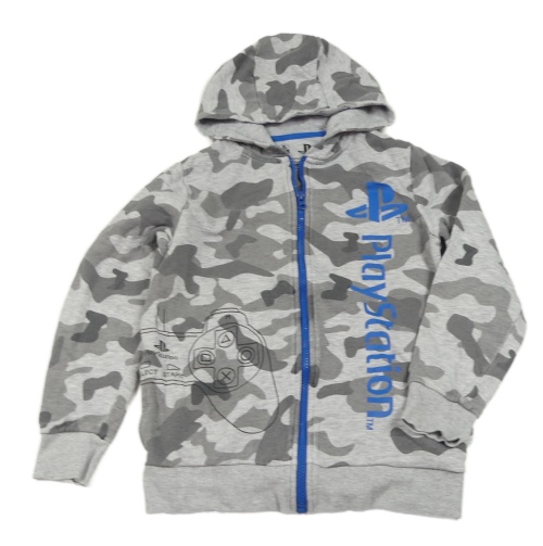 Světlešedo-šedo-tmavošedá army melírovaná propínací mikina s ovladačem - PlayStation a kapucí