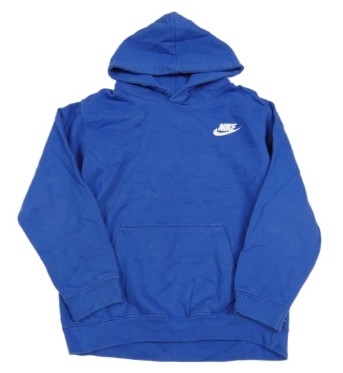 Cobaltově modrá mikina s logem a kapsou a kapucí Nike