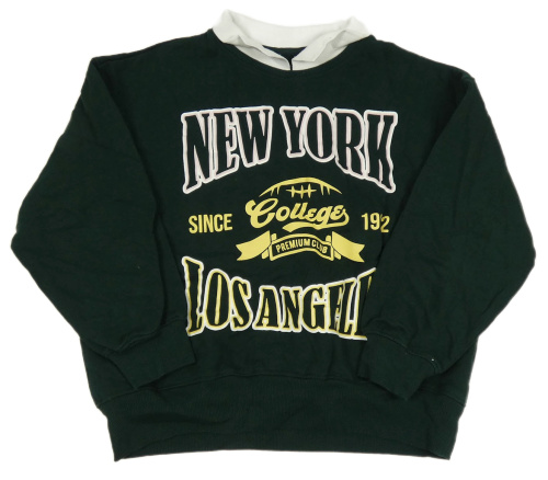 Tmavozelená mikina s nápisy a límečkem