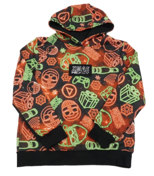 Černo-červeno-zelená mikina s vánočními obrázky a kapucí George