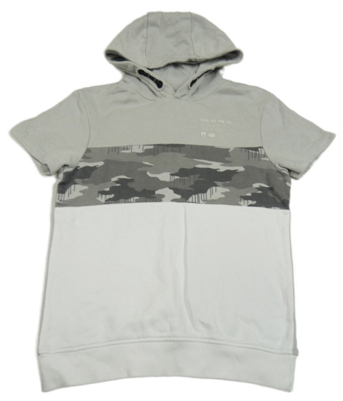 Šedo-army-bílá tepláková vesta s nápisem a kapucí George