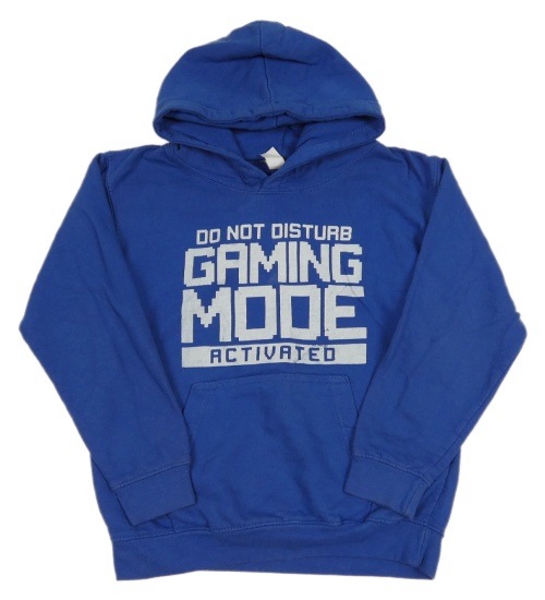 Tmavomodrá mikina s nápisy a kapucí