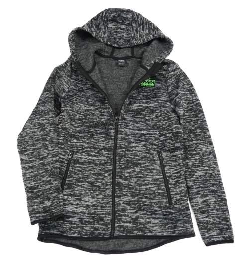 Šedo-černá melírovaná pletená propínací mikina s kapucí Y.F.K.