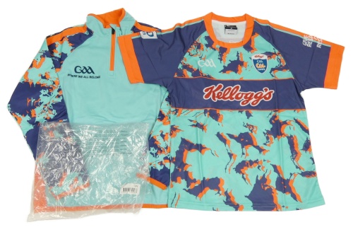 Nové - 2set - Tyrkysovo-tmavomodro-neonově oranžová sportovní mikina se vzorem + tričko