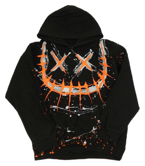 Černá mikina se smajlíkem se skvrnami a kapucí