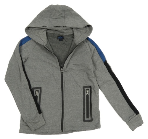 Šedá melírovaná thermo propínací mikina s černo-modrým pruhem a kapucí alive