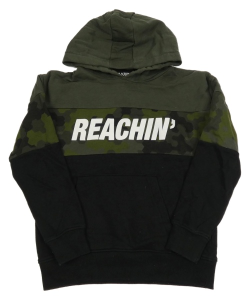 Khaki-černá mikina s nápisem a army pruhem a kapucí C&A