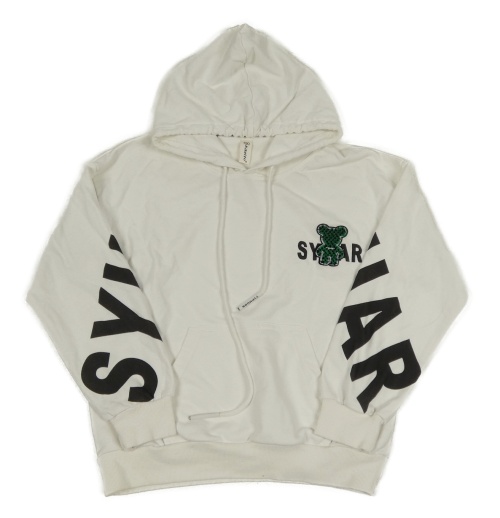 Bílá mikina s nápisy a medvídkem a kapucí