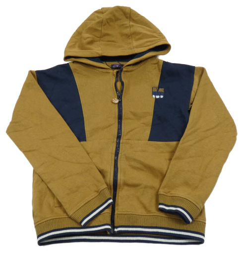 Hnědo-tmavomodrá propínací mikina s kapucí