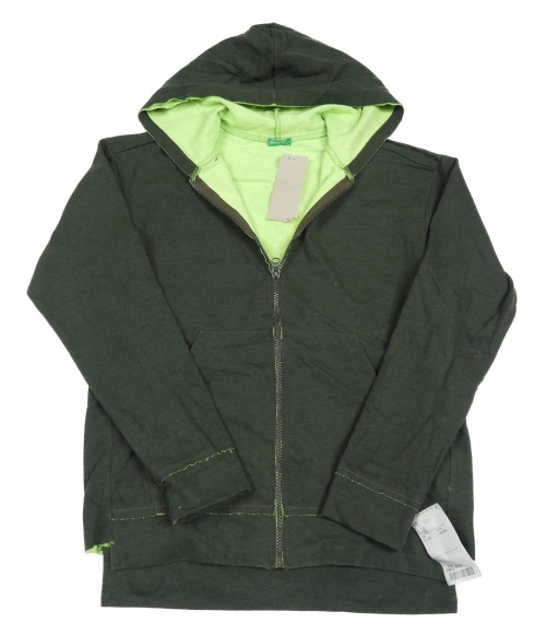 Nové - Tmavozelená propínací mikina s kapucí Benetton