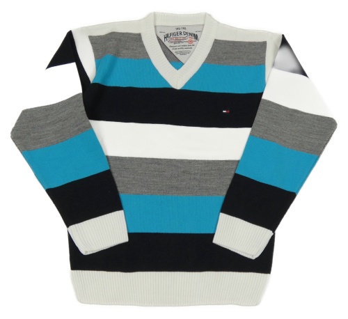 Modro-bílo-šedý pruhovaný lehký svetr - Tommy Hilfiger