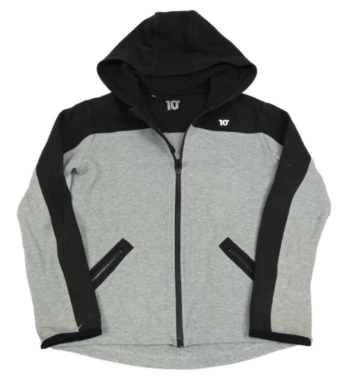 Černo-šedá propínací mikina s nášivkou a kapucí