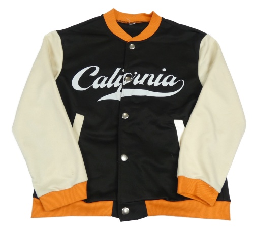 Černo-béžovo-oramnžová baseballová mikina s nápisem