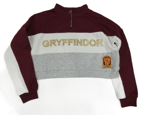 Vínovo-bílo-šedá crop mikina s nápisem Harry Potter