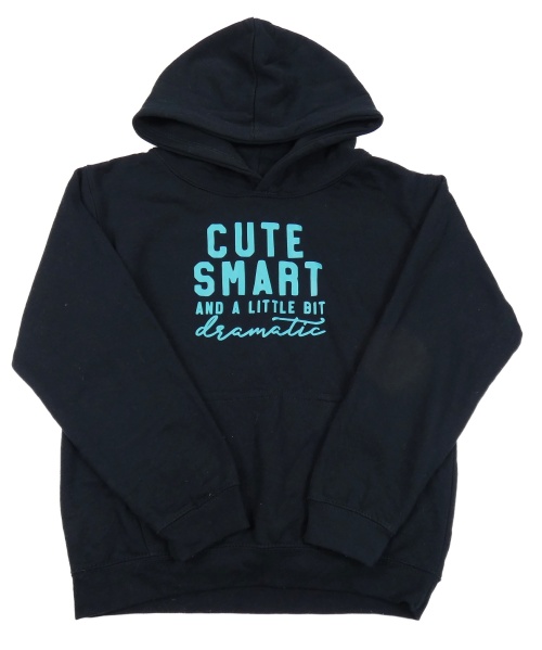 Tmavomodrá mikina s nápisem a kapucí