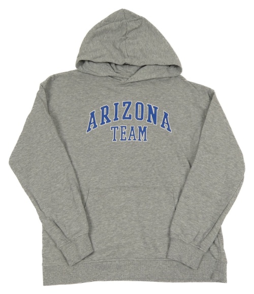 Šedá mikina s nápisem a kapucí