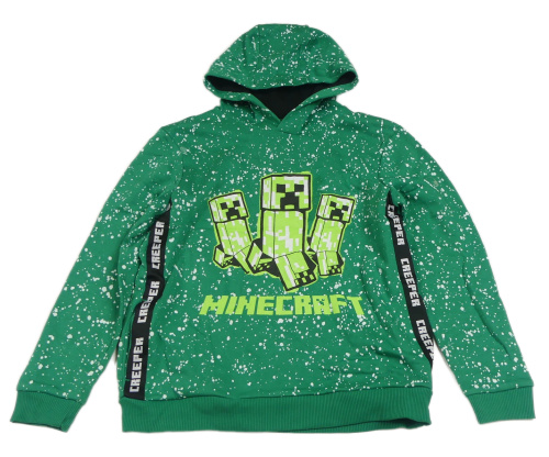 Zelená mikina s Minecraft a skvrnkami a pruhem a kapucí George