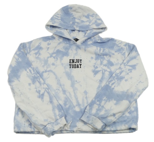 Modro-bílá batikovaná crop mikina s nápisem a kapucí C&A