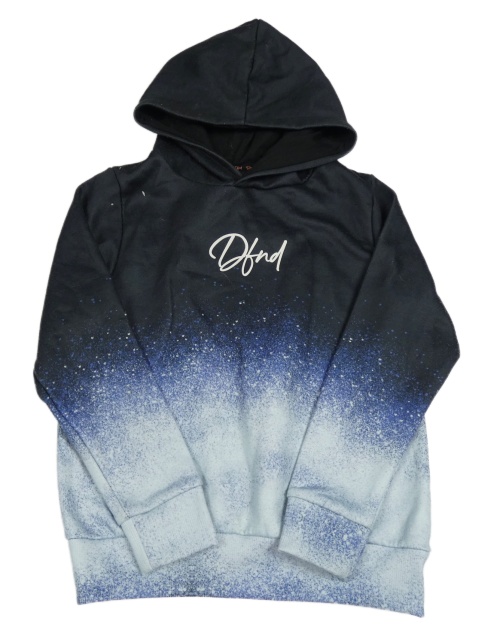 Černo-modrá vzorovaná mikina s nápisem a kapucí