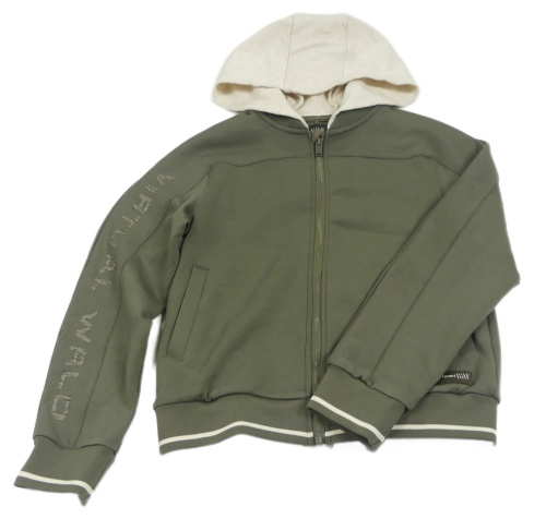 Khaki-béžová propínací mikina s nápisy a kapucí