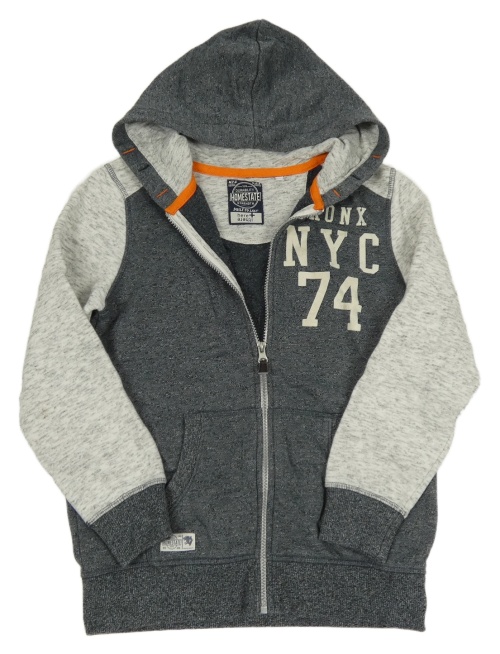 Šedá melírovaná propínací mikina s nápisem a kapucí C&A