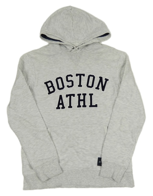 Světlešedá melírovaná mikina s nápisy a nášivkou a kapsou a kapucí H&M