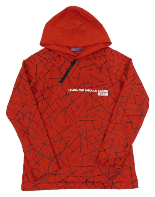 Červeno-černá vzorovaná lehká mikina s kapucí
