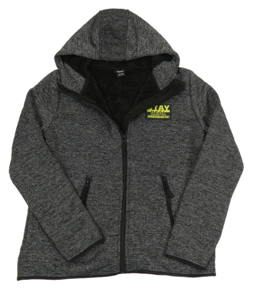 Tmavošedo-černá melírovaná pletená propínací zateplená mikina s nášivkou a kapucí Y.F.K.