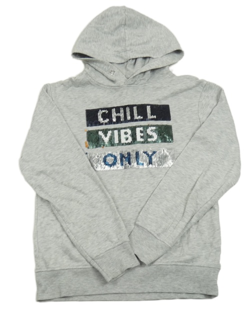 Šedá melírovaná mikina s nápisem z flitrů a kapucí H&M