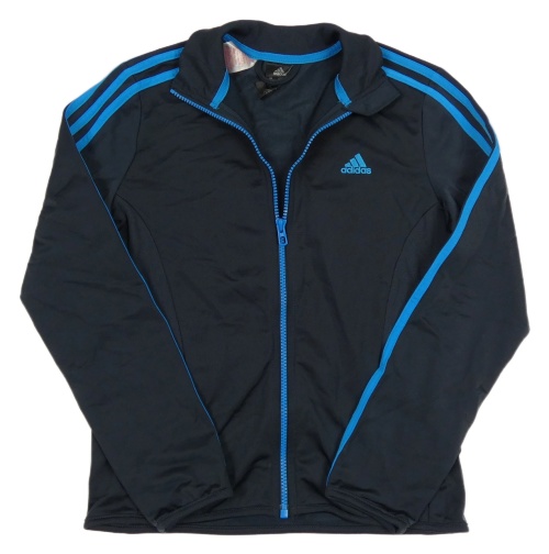 Tmavomodrá sportovní funkční propínací mikina s pruhy a logem Adidas