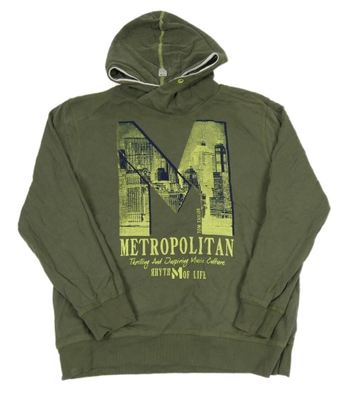 Khaki mikina s písmenkem s městem a nápisy a kapucí TOM TAILOR