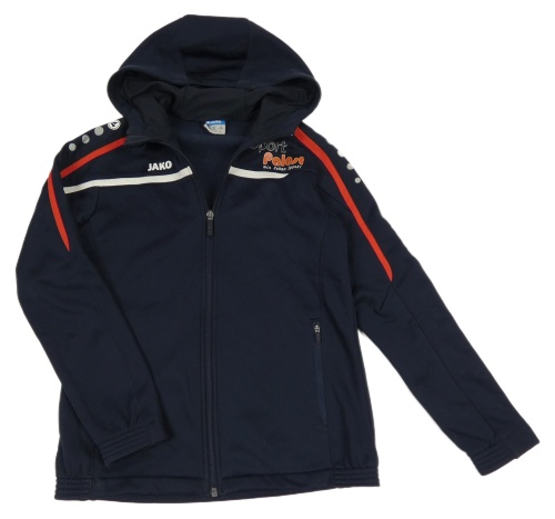 Tmavomodrá propínací thermo mikina s nápisem a kapucí