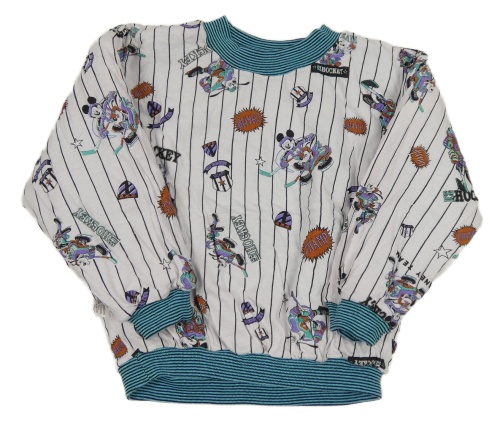 Bílá pruhovaná zateplená oboustranná mikina s Mickeym