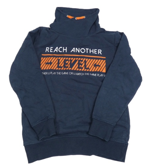 Tmavomodrá mikina s nápisy a komínovým límcem YIGGA