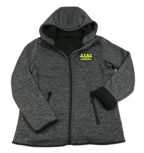 Tmnavošedá melírovaná zateplená propínací mikina s nápisem a kapucí Y.F.K.