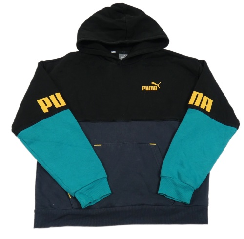 Černo-tmavomodro-zelená mikina s logem a nápisem Puma
