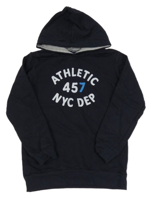 Tmavomodrá mikina s nápisem s číslem a kapucí