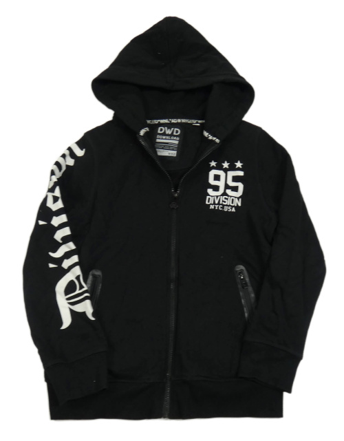 Černá propínací mikina s bílými nápisy a kapucí C&A