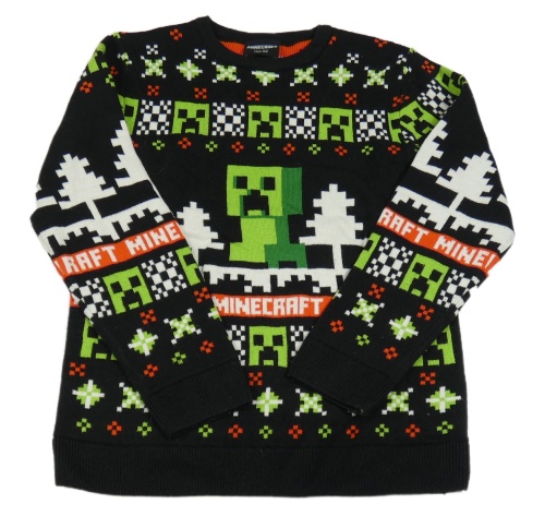 Černo-zeleno-bílý vzorovaný svetr s Minecraft