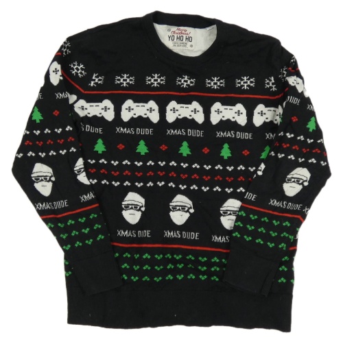 Černý vzorovaný vánoční svetr s obrázky C&A