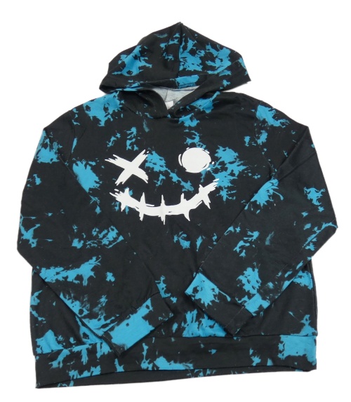 Černo-modrá batikovaná mikina s obrázkem a kapucí