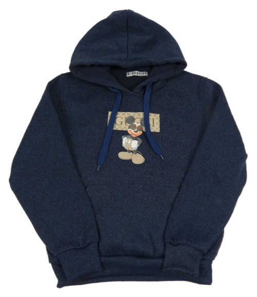 Tmavomodro-černá melírovaná mikina s Mickey Mousem a kapucí