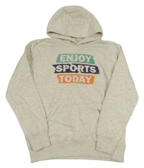 Světlešedá melírovaná mikina s nápisy a kapsou a kapucí YIGGA